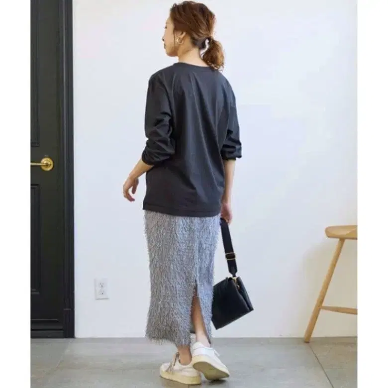 택 포함 새상품 스픽 앤 스팬 라메 프린지 스커트 I라인 롱 기장