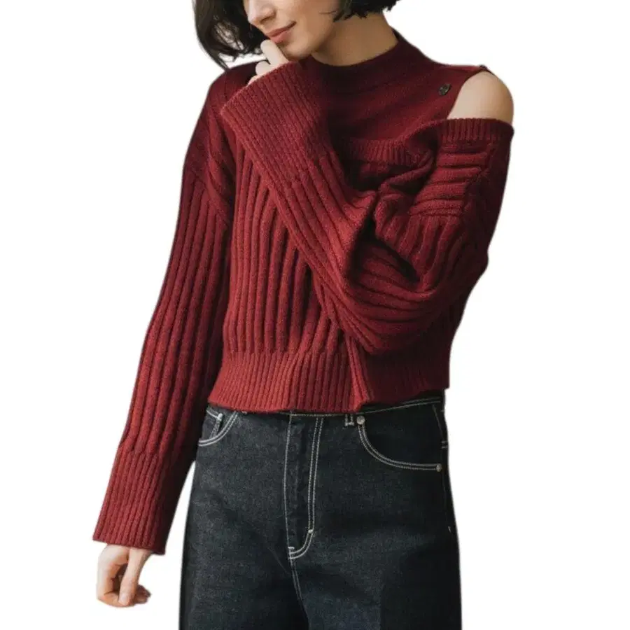 봄 여름 가을 겨울 상의 니트 스웨터 풀오버 티셔츠 비대칭 빨간색 레드 와인 보르도