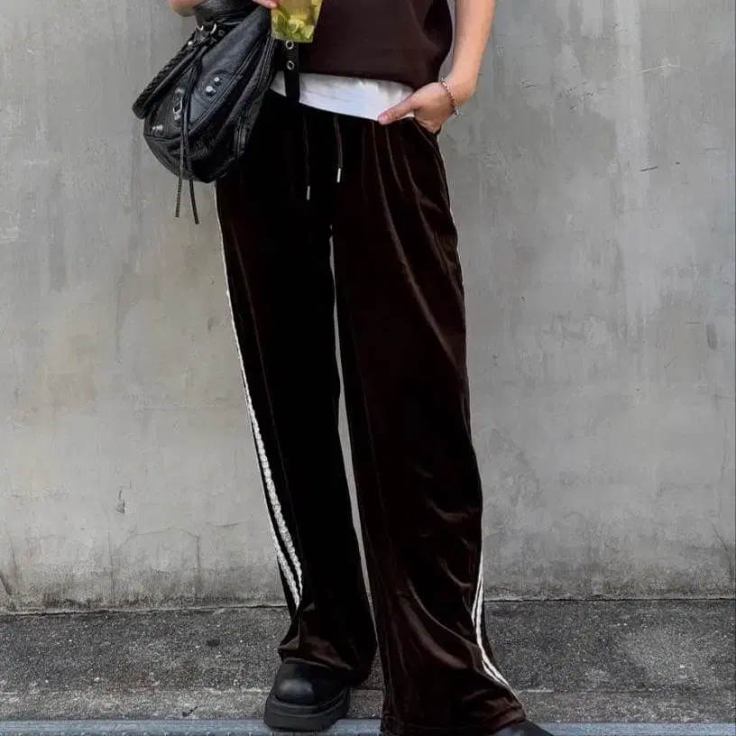 mamu online 벨벳 레이스 팬츠 브라운