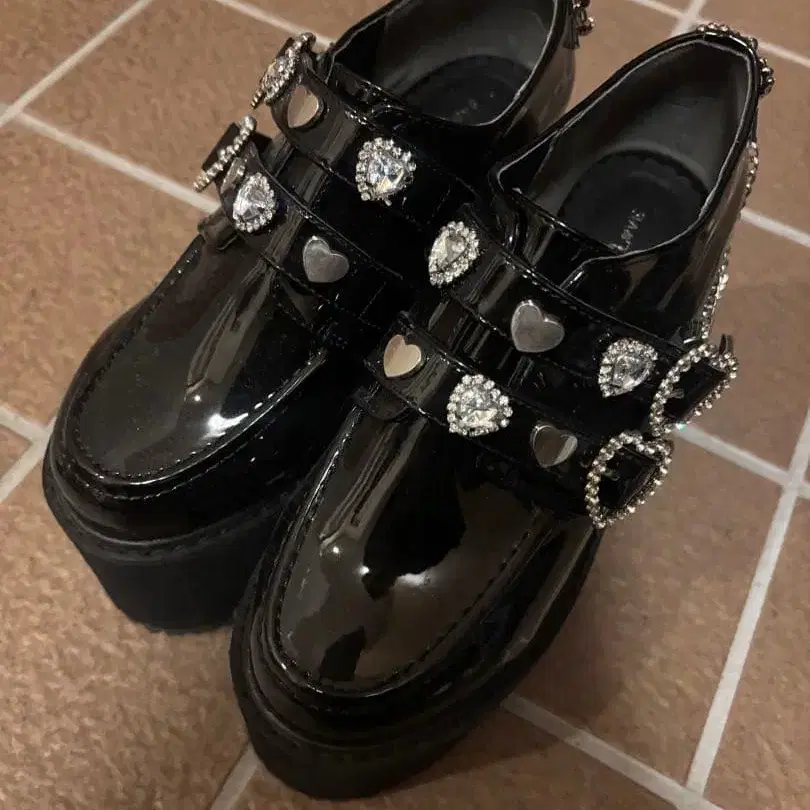 반짝이는 하트 참 체인 달린 더블 하트 로퍼