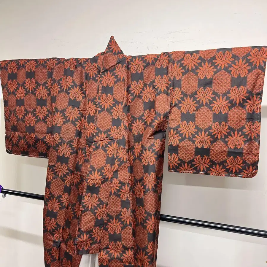 코몬 오시마 명주 진흙 염색 난국 능 직물 기모노 124tz