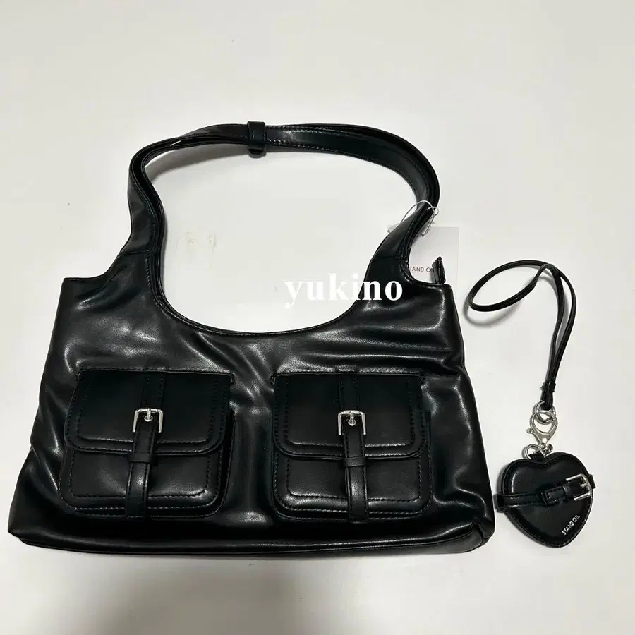 Stand oil 블랙 숄더백 하트 모양 참 포함
