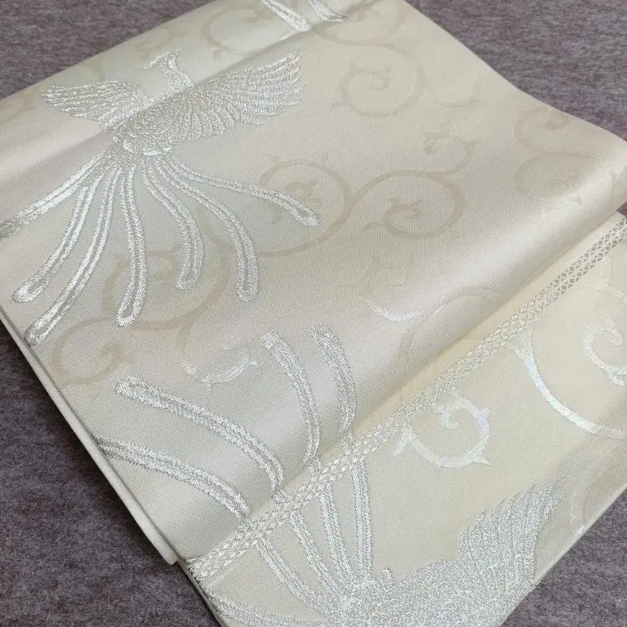 1960 화 후쿠로 오비 태고 꽃 고급 은색 화이트