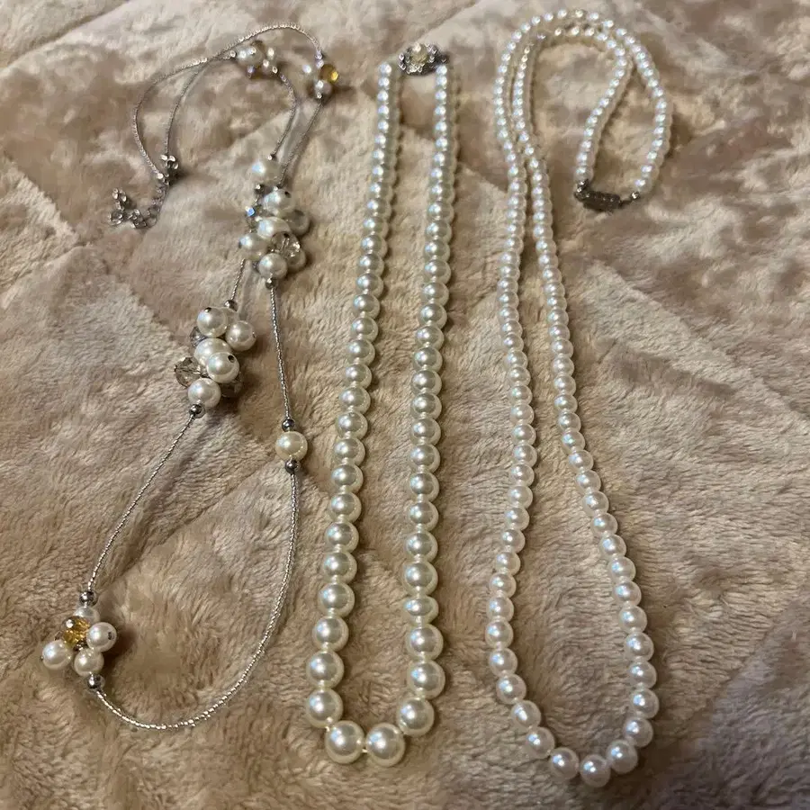 화이트 펄 목걸이 3개 세트