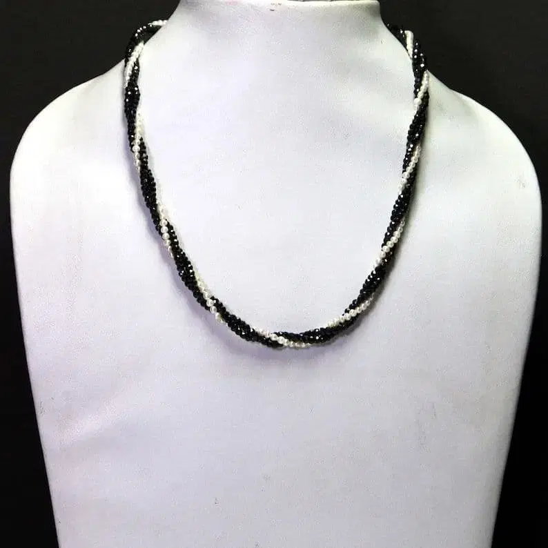 천연 파셋 론델 블랙 스피넬과 천연 펄 트위스트 목걸이