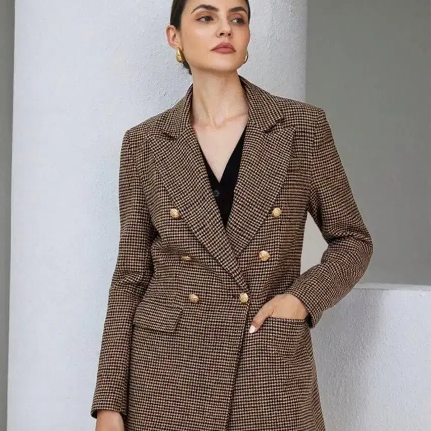 새상품 shein 체크 무늬 자켓 비즈니스 스타일 라펠 긴팔 S 한국