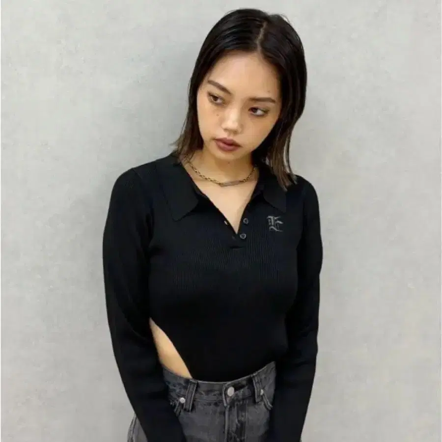 EVRIS 로고 리브 니트 바디 수트 (블랙)