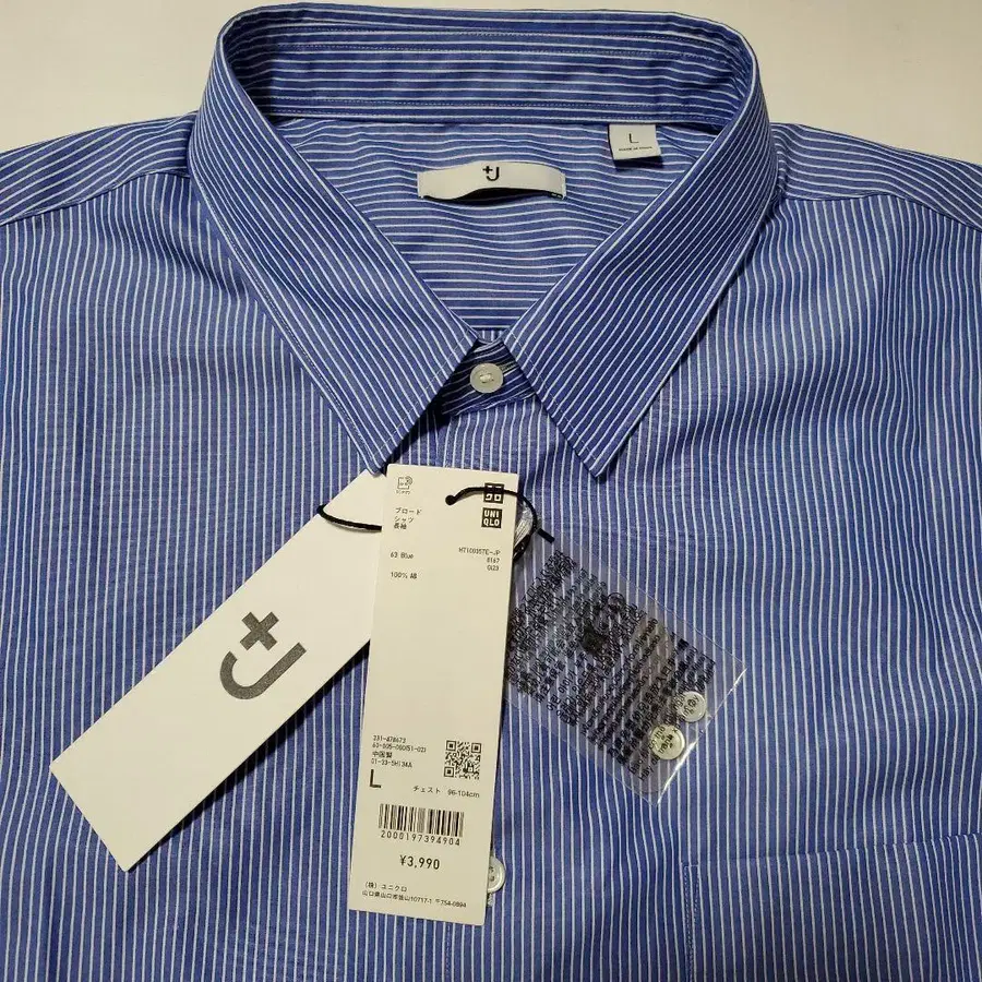 유니클로+J 브로드 셔츠 미사용 택 포함 L 사이즈 스트라이프 레어