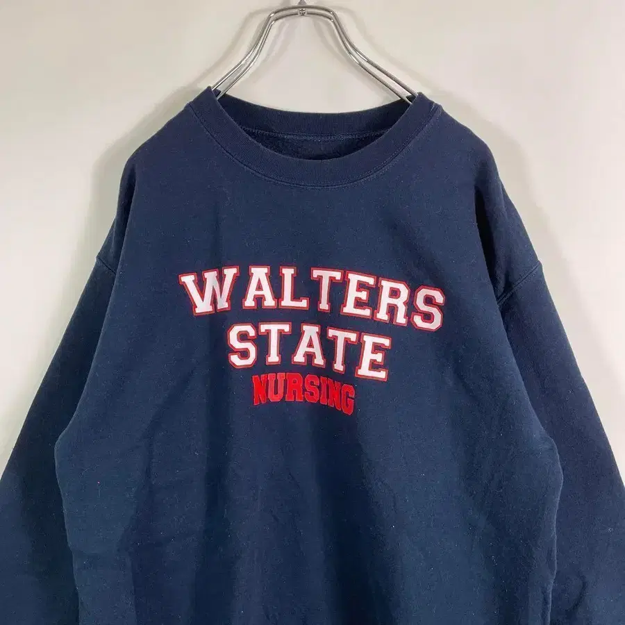 칼리지 프린트가 특징인 네이비 맨투맨입니다 ☺︎