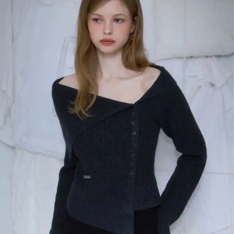 ROSE FRANTZ 로제 프랑츠 언밸런스 스칼라 버튼 니트