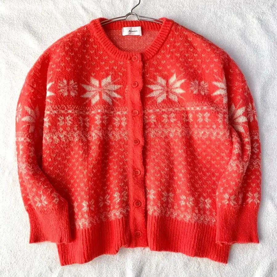 [ 암리르 ] 니트 가디건 눈꽃 패턴 풀 버튼 크루넥 긴팔 M