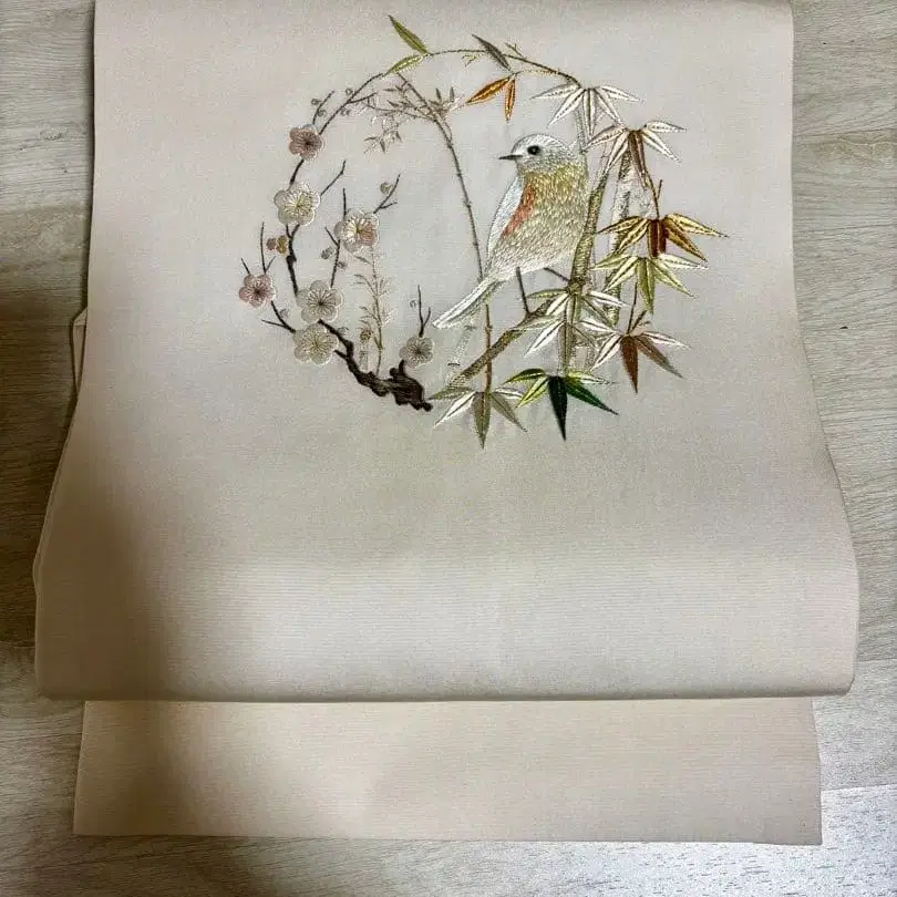 매화 대나무에 꾀꼬리 계곡 자수 나고야 오비 o-77