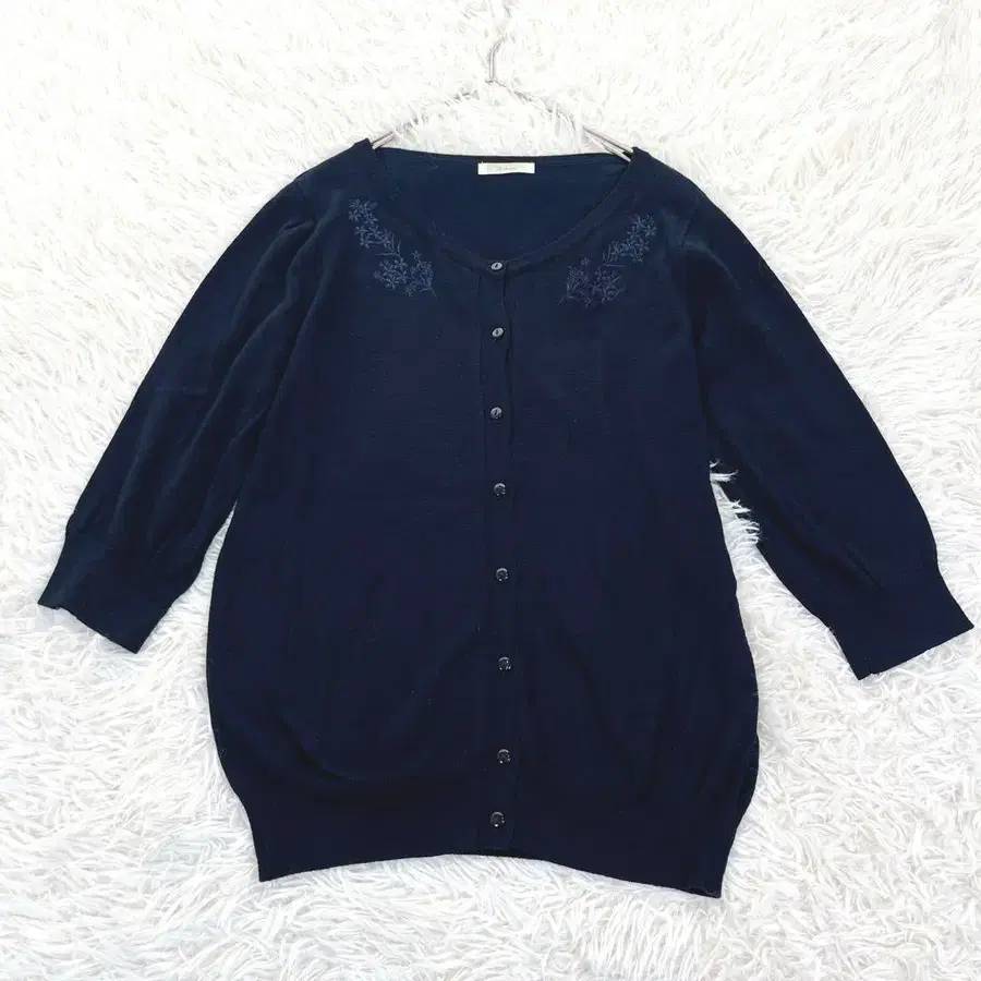 • 오스트리아제 니트 가디건 벚꽃 자수 은색 버튼 네이비
