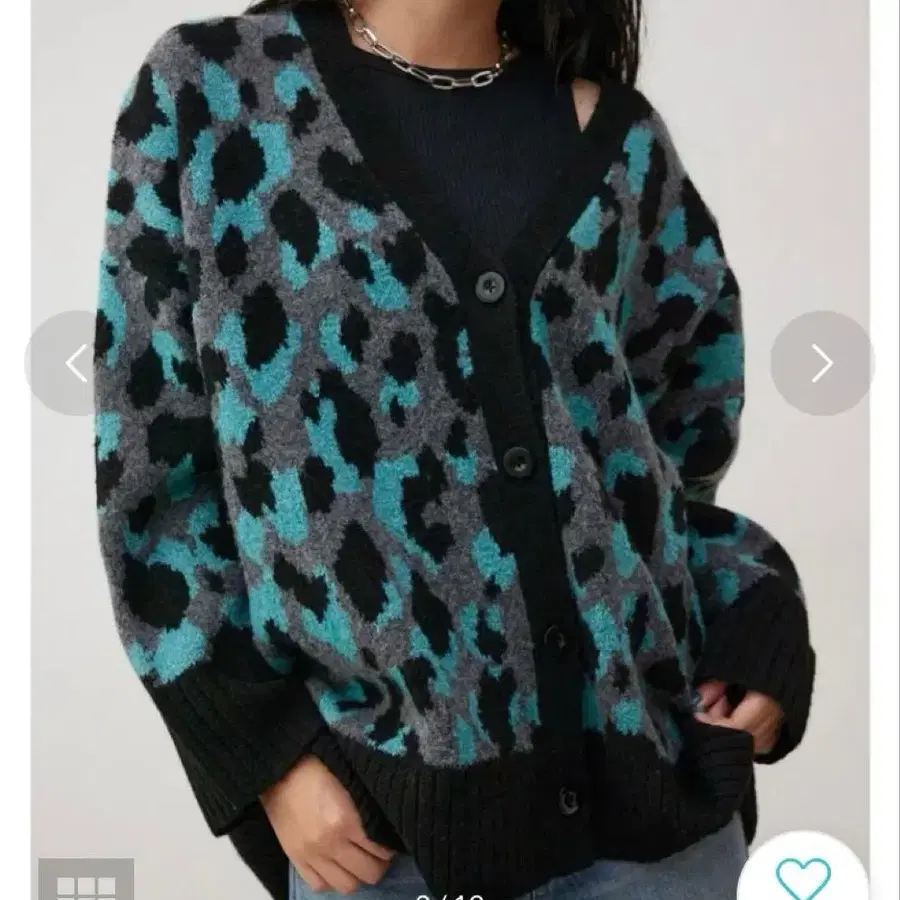 아즐다운 배색의 레오파드 무늬가 눈길을 끄는 가디건입니다.
