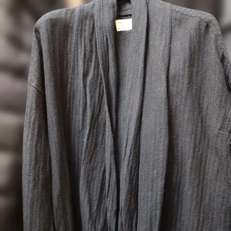 네이비와 그레이 같으면서 블랙 같은 스트라이프 오픈 프론트 겉옷