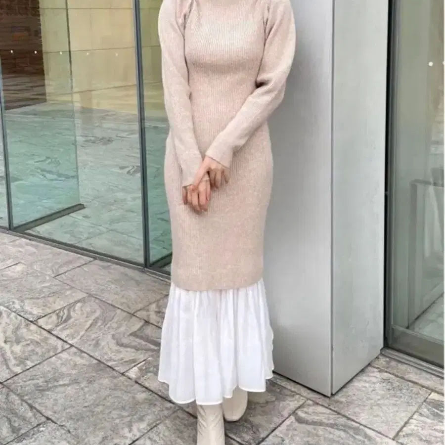 [ 시착만 한 상품 ] 리리안 캐럿 니트 원피스 베이지 M