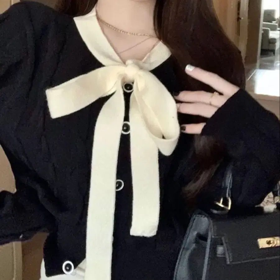 [Nia] 리본 포함 모노톤 가디건
