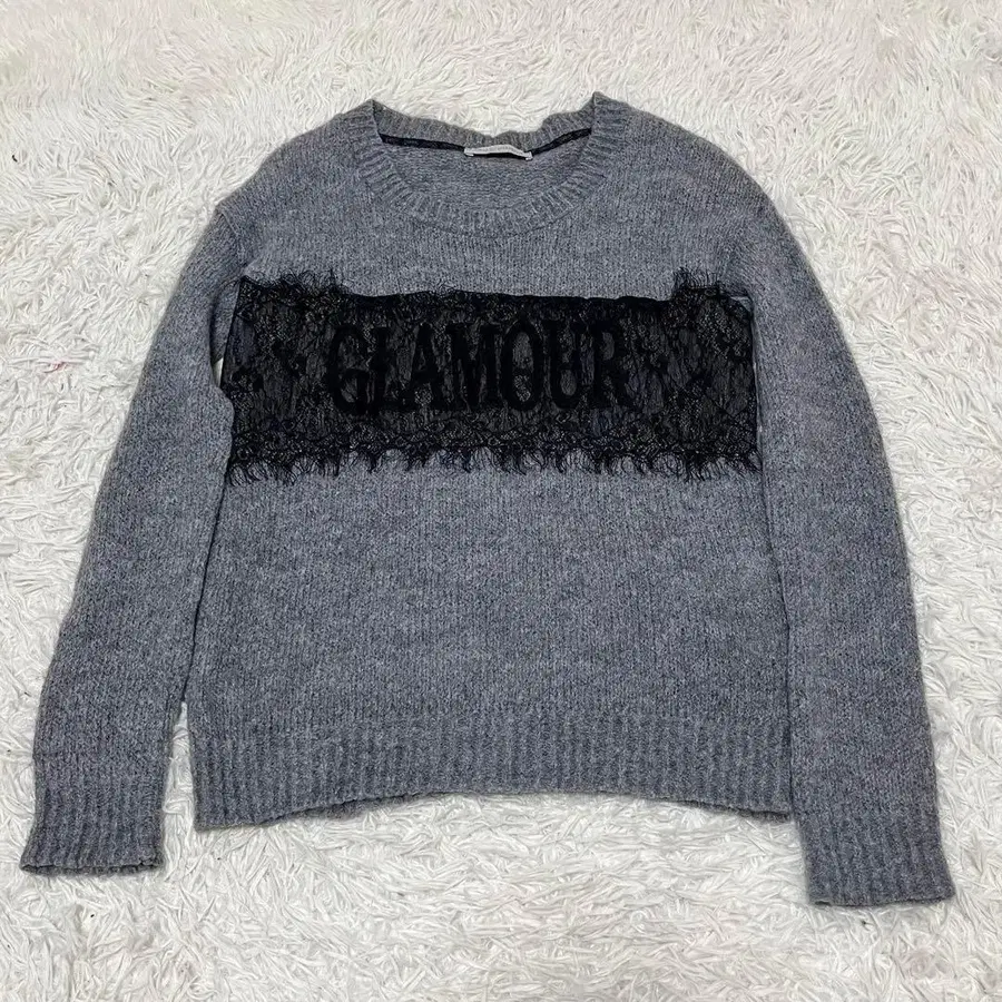 • 1023 Rene 그레이지 레이스 디테일 백 지퍼 긴팔 니트 38