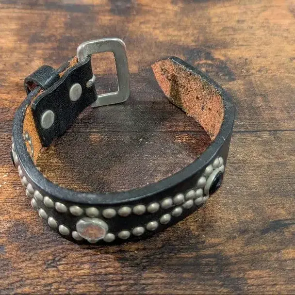 천연 가죽 스터드 장식 뱅글 리스트 밴드