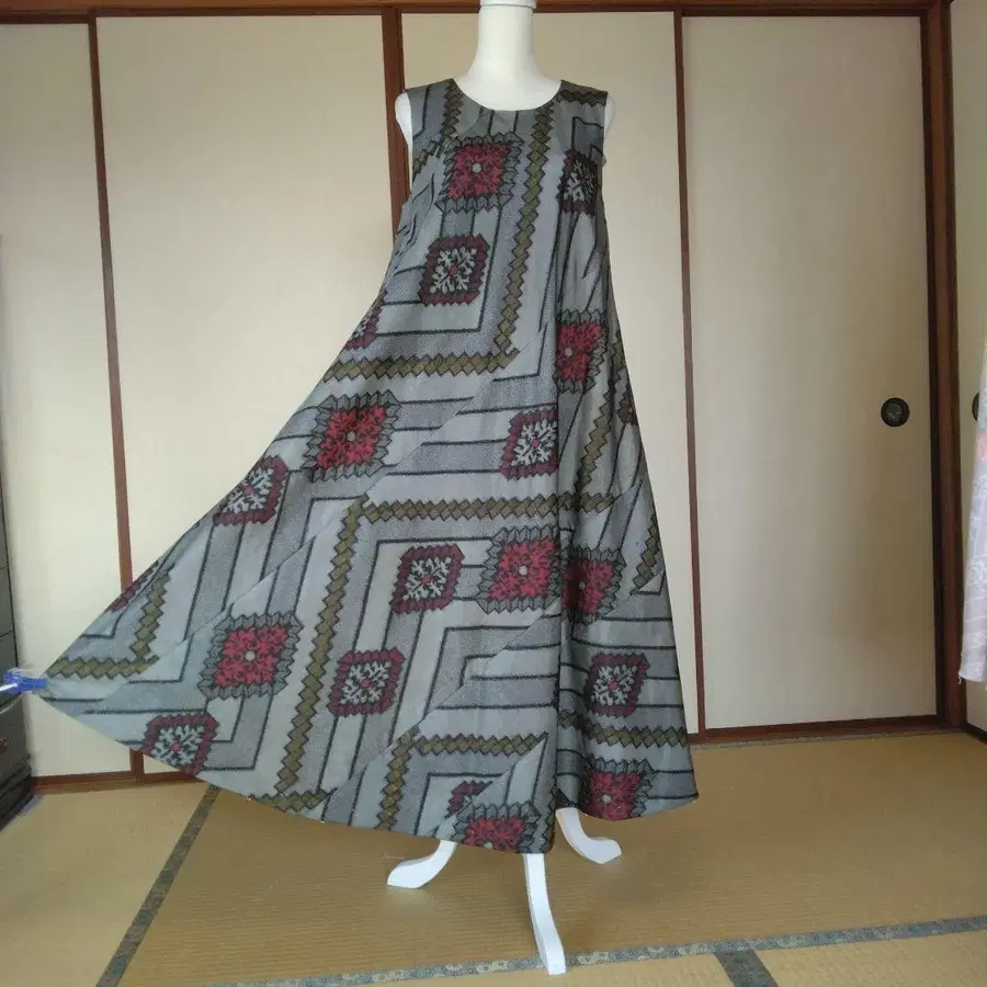 오시마 명주 해체 원단, 바이어스 재단 롱 플레어 원피스 M 사이즈