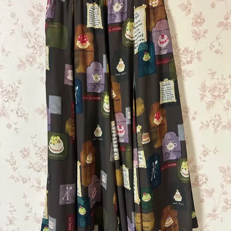 INGEBORG 스위트 프린트 플레어 롱 스커트 새상품급