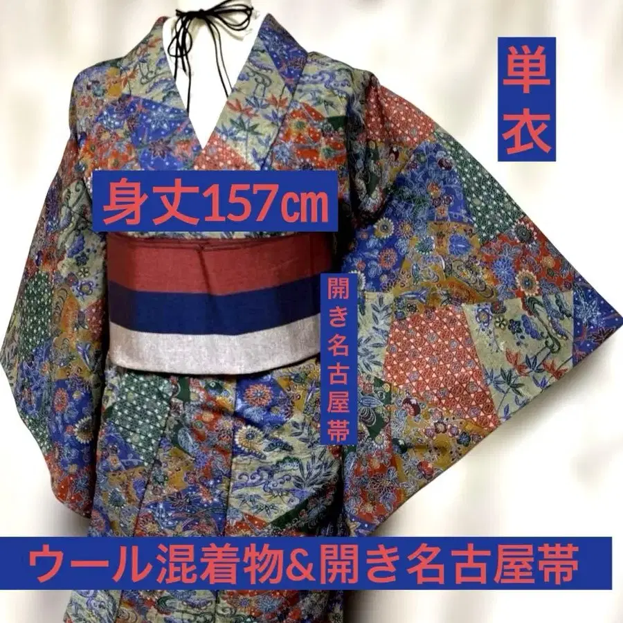 익명 배송 단의 울 혼방 기모노 & 열림 타입 나고야 오비