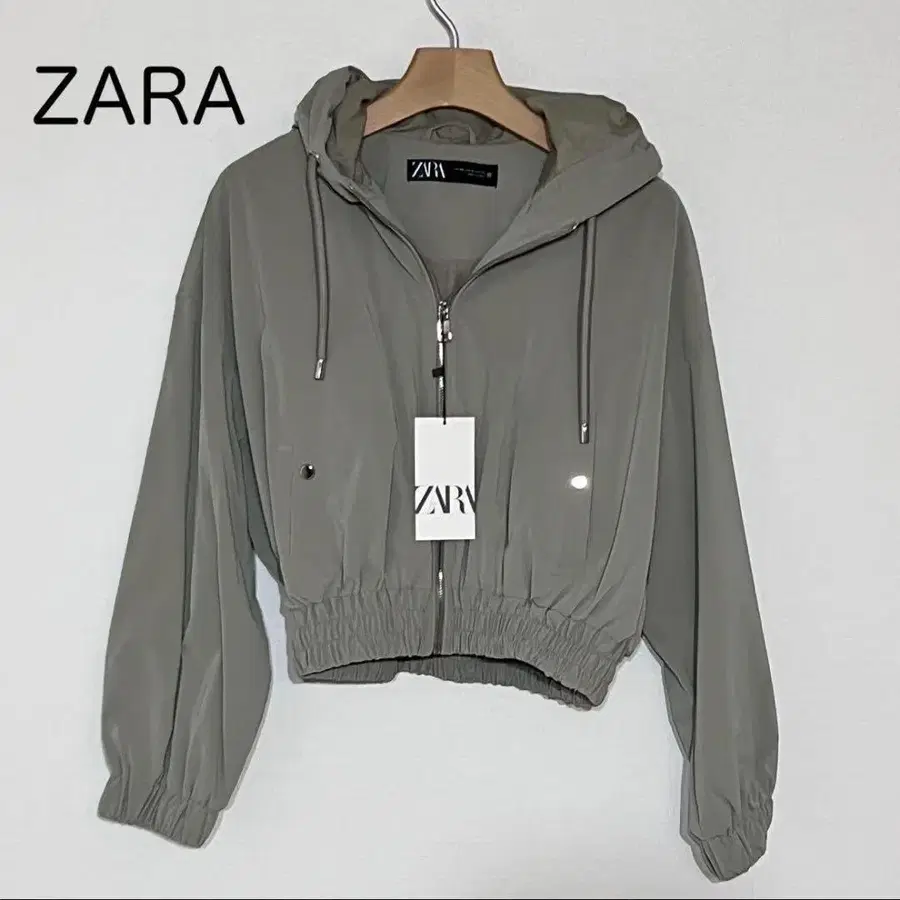 [ 새상품 ] ZARA 러버 피니쉬 후디드 자켓 XS 카키