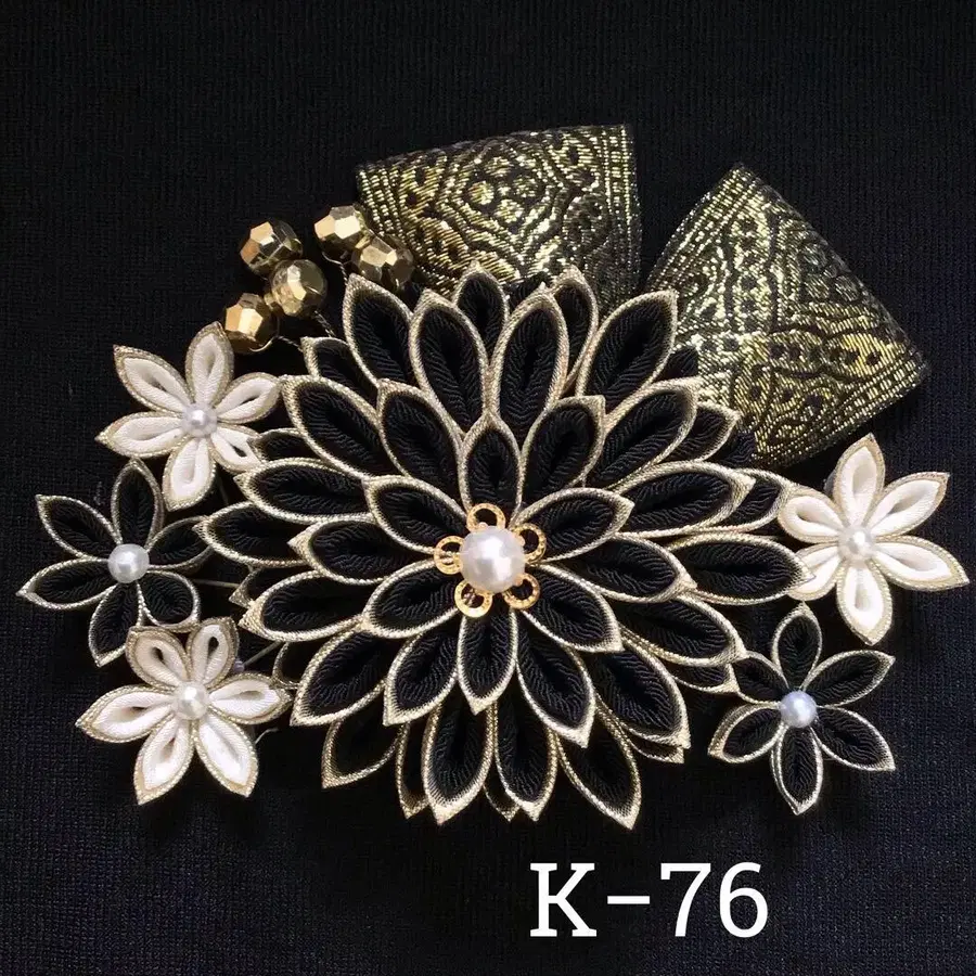츠마미자이쿠 머리 장식 성인식 졸업식 사전 촬영 블랙 골드