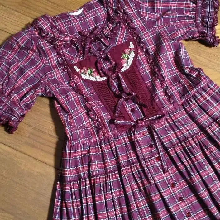딸기 자수 오리지널 타탄 체크 원피스