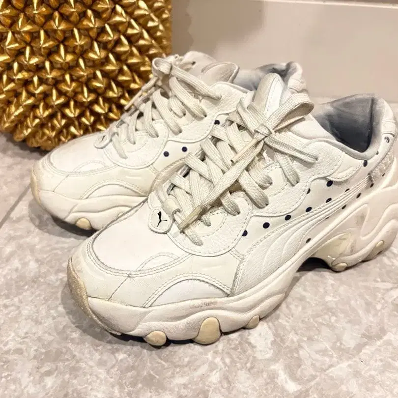 자동 번역되었어요. 원문보기2000년대에 출시된 'PULSAR'를 베이스로, 통굽 스타일의 청키한 밑창, 레이어를 겹친 어퍼 디자인 등 발에 볼륨감을 연출하는 실루엣으로 완성되었습니다. 쿠션성이 높고, 보기보다 가벼워 피로감이 적으며, 스타일업 효과가 있으면서도 걷기 편한 통굽 신발입니다. 어퍼에 도트를 배치하여 악센트를 더한 디자인입니다. 대담하고 팝하며 글래머러스한 펄서 컬렉션의 스니커즈. 시크한 크림 베이지 컬러와 폴카 도트의 조합으로, 품격 있는 귀여움을 표현했습니다. 볼륨감 있는 웨지솔은 안정감이 있으며, 착용감도 매우 좋습니다. 어떤 스타일의 아이템과도 잘 어울리므로, 심플한 스타일링의 포인트로, 코디의 주인공이 될 한 족입니다.