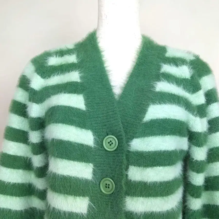 seiney [ F ] 그린과 화이트 스트라이프 가디건 a15
