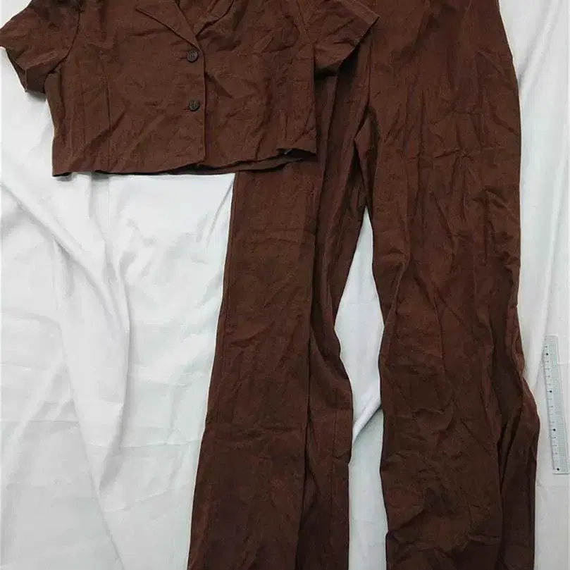 아심 셋업 반팔 자켓 & 와이드 팬츠 브라운 계열 여성용