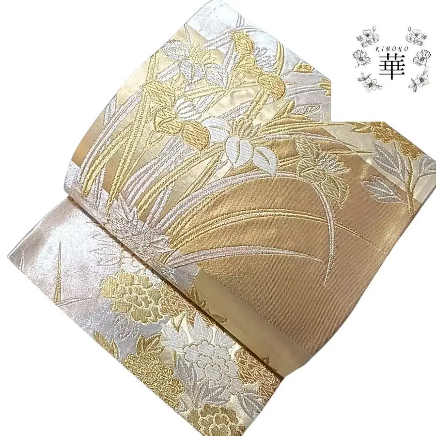 1960 화 후쿠로 오비 꽃 아야메 꽃 금 은