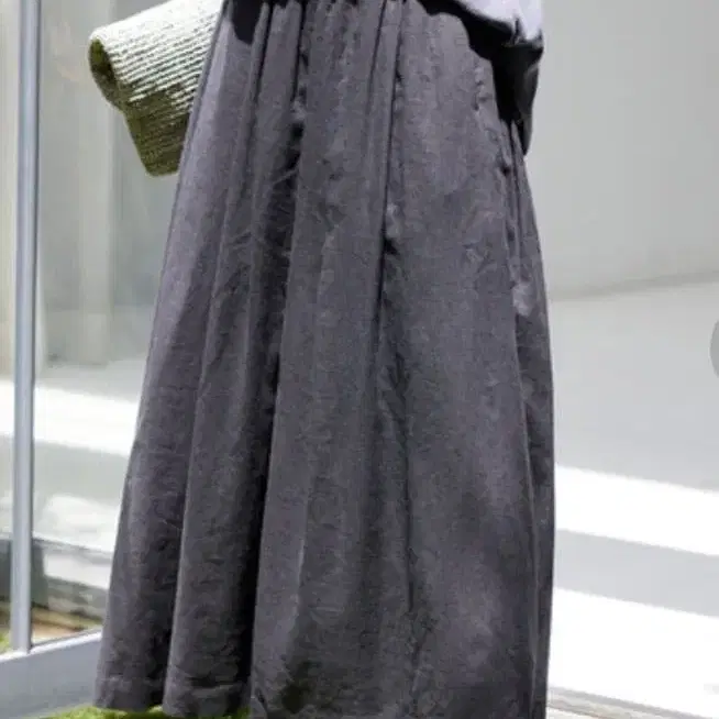 택 포함 미사용 새상품 이에나 린넨 레이온 태그 개더 롱 스커트 블랙