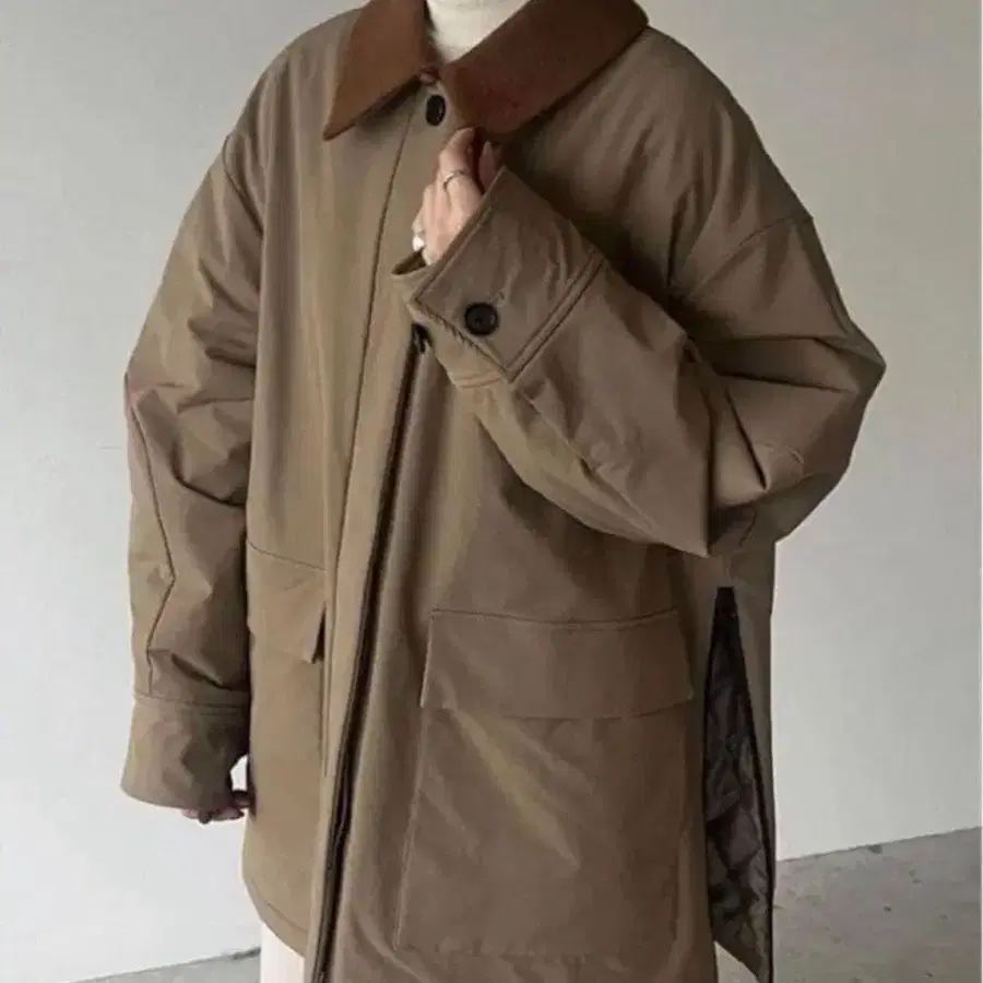 헌팅 재킷에서 영감을 받은 BOX 실루엣의 오버 사이즈 자켓입니다. 뛰어난 내구성과 발수성이 특징인 CORDURA 나일론을 사용한 4WAY 스트레치 소재로, 이중 직조 방식으로 뒷면의 실 굵기를 달리하여 따뜻한 촉감을 표현했습니다. 안쪽에는 충전솜 퀼팅을 더해 방한 효과를 높였습니다. 앞면에는 왼쪽 가슴과 허리 부분에 포켓이 있으며, 플랩이 달린 패치 포켓은 옆에서 손을 넣을 수 있는 사양입니다. 소매는 아치 라인으로 CLANE 특유의 둥근 실루엣이 특징입니다.