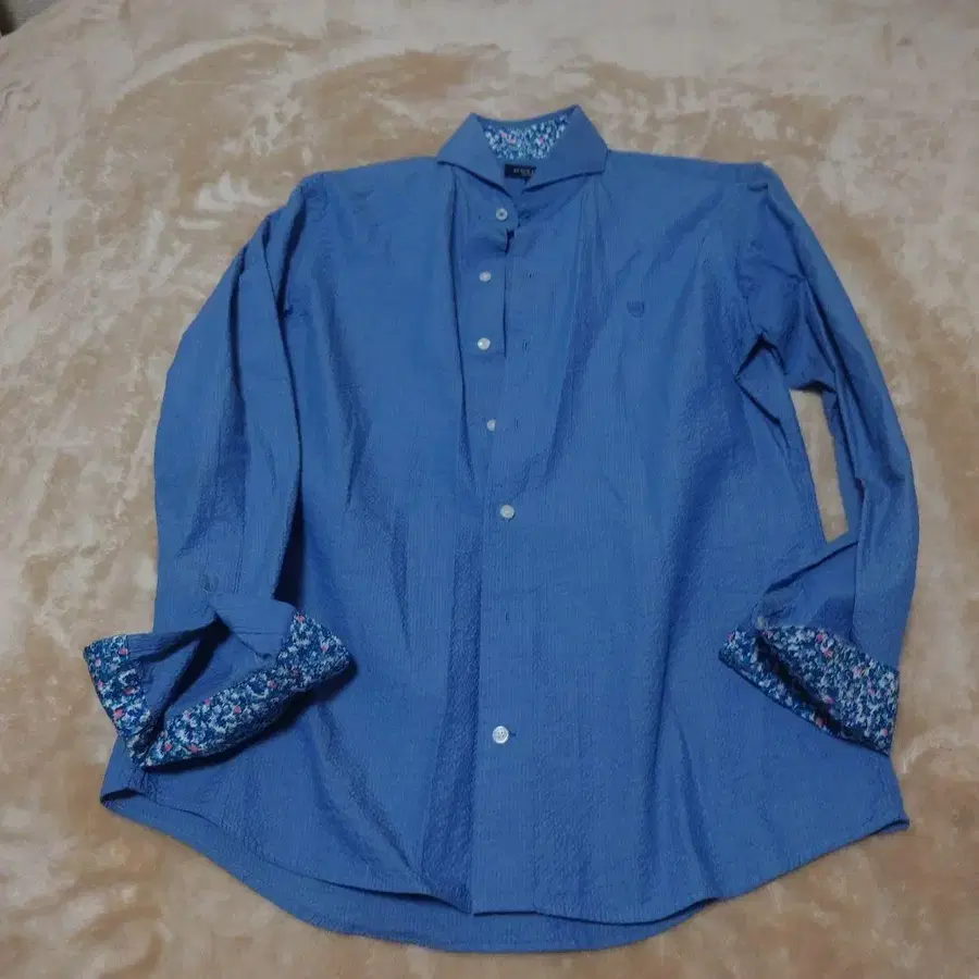 파란색 긴팔 와이셔츠 꽃무늬 커프스