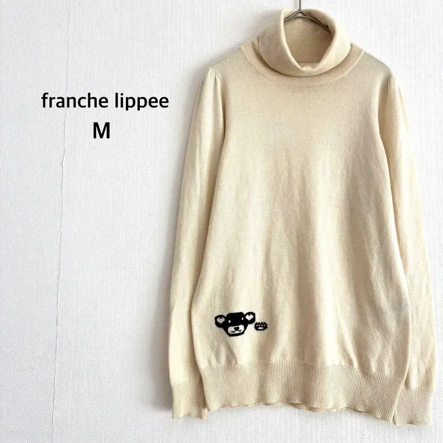 화이트 아이보리 화이트 베이지 하이넥 터틀넥 니트 스웨터 곰 자수 베어 하트 귀여운 심플 코튼 혼방 울 혼방 출퇴근 오피스 크리스마스 이벤트 고급 연말 연초 설날