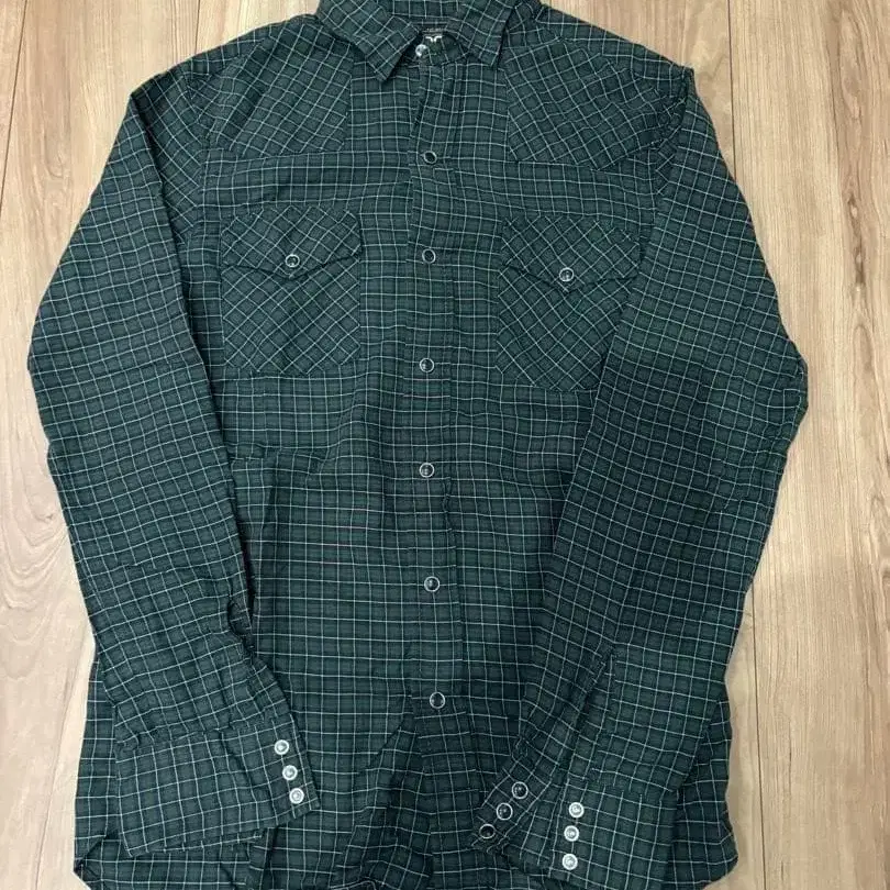 다크 그린 체크 무늬 긴팔 셔츠