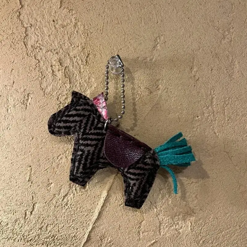 핸드메이드 샵 Teepe가 선보이는, 모두 하나뿐인 레더 호스 참입니다. 고급 소가죽 프린트를 사용했으며, 재단, 봉제, 마감까지 하나하나 정성스러운 수작업으로 제작했습니다. 말은 예로부터 [일이 순조롭게 진행된다] [행운이 달려든다]는 신의 탈것, 행운의 물건으로 사랑받아 왔으며, 내년의 십이지신이기도 합니다. 매년 나라의 쇼소인전에서 전시되는 물품 중 하나로 말의 안장이 전시되었던 점, 아메리카 원주민에게 필수적인 아이템에 말이 있었던 것에 영감을 받아 몇 년 전부터 제작하고 있습니다. 최근, 마이니치 방송의 정보 버라이어티 프로그램 [욘찬 TV 부라산도]에서도 소개되었습니다. 자신을 위한 부적으로는 물론, 소중한 분께 특별한 기프트로도 추천합니다. 하나하나 정성껏 핸드메이드로 제작했습니다. 같은 디자인은 없으며, 1점 한정으로 취급합니다. 2026년 십이지신이기도 한 이 아이템을 내년의 부적으로 꼭 착용해 주세요! 사이즈: S 세로: 약 8cm (머리~발끝) 가로: 약 10.5cm (얼굴~엉덩이) 소재: 소가죽 ※ 핸드메이드이므로 약간의 개체 차이가 있습니다. 현재, 매장 판매 가격보다 10% OFF로 제공합니다. 구매 후에는 매장에서 직접 발송합니다.