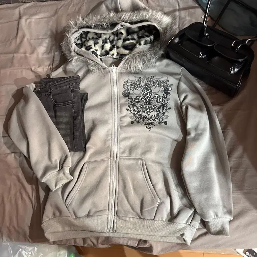 그레이 후드 부착 후드티와 플레어 팬츠 세트