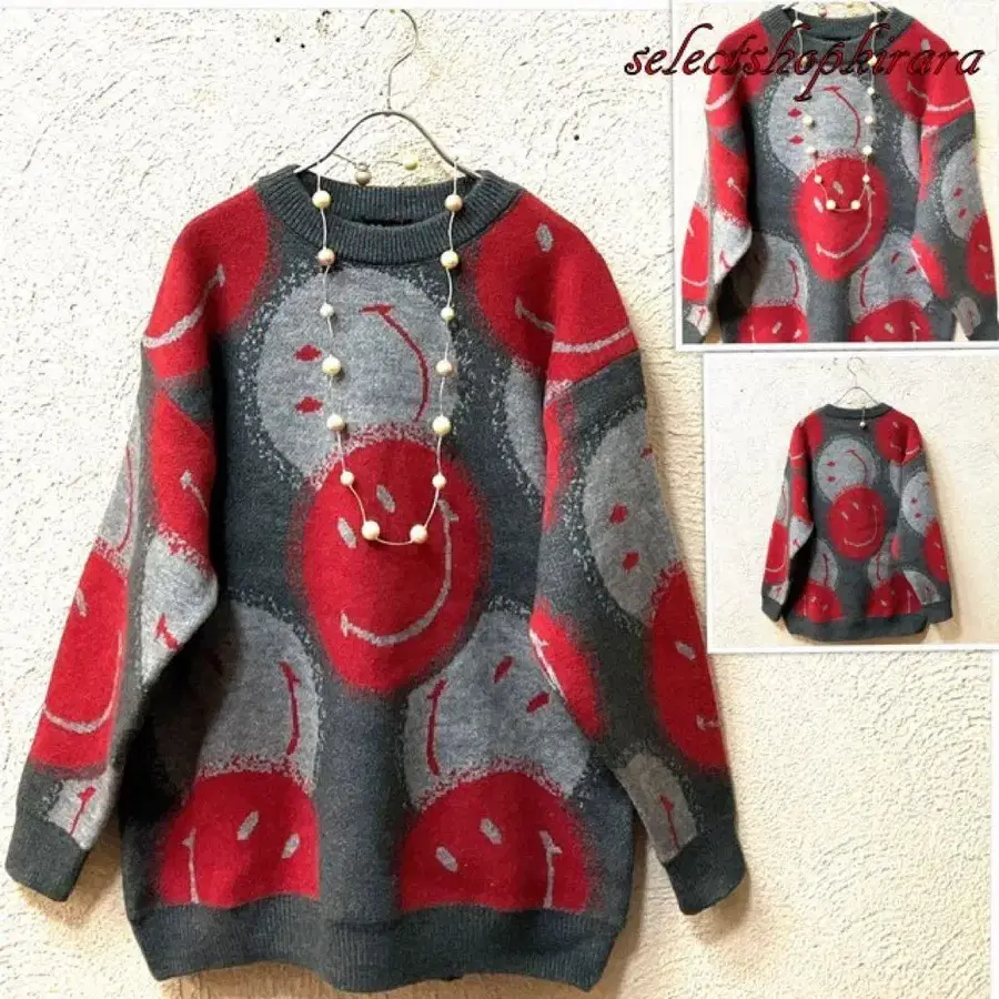 2025 신상 루즈한 사이즈 스마일 올 패턴 촉촉 니트 풀오버 L-LL