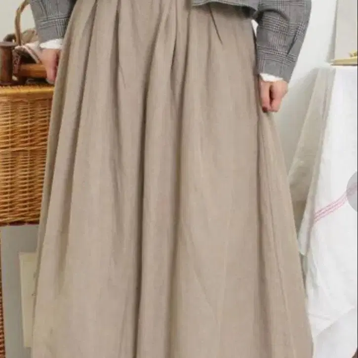 새상품 사만사 모스모스 면린넨 개더 스카초 베이지