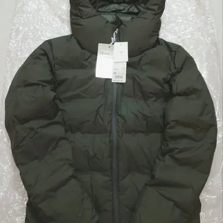 택 포함 UNIQLO 남성용 심리스 다운 파카 XS 올리브