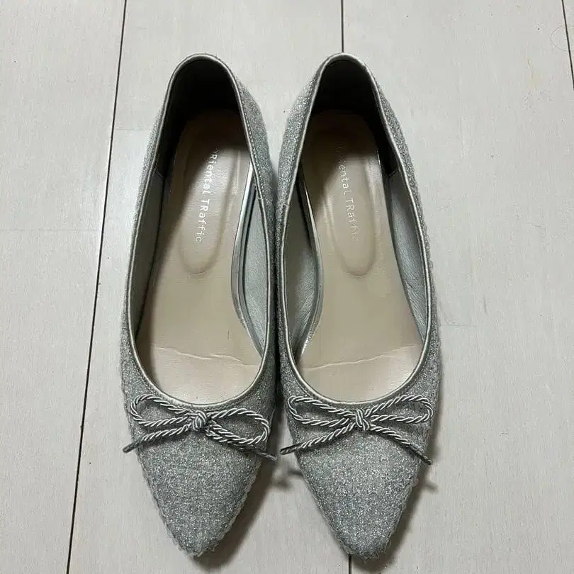 [ 새상품급 ] Oriental traffic 실버 리본 펌프스 36