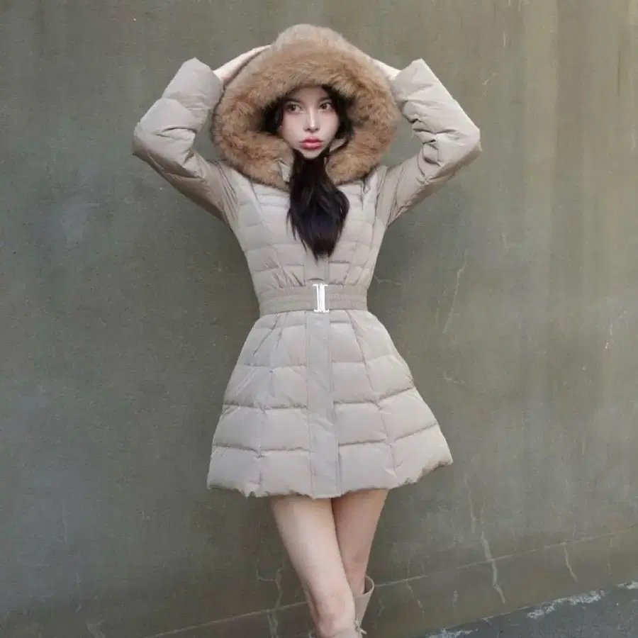다리치 레이디 미디 다운 코트 베이지