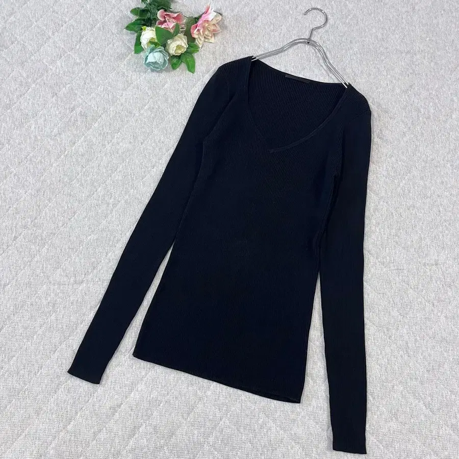 • 블랙 V넥 니트 긴팔