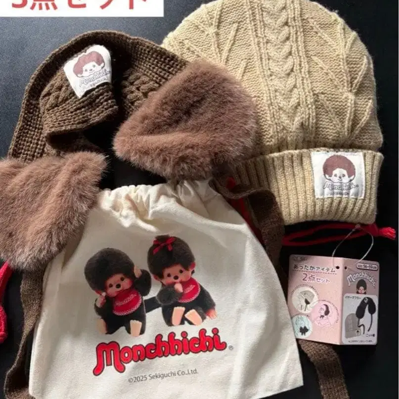 새상품 몽치치 따뜻한 아이템 2점 세트 귀도리 니트 모자 복조리 포함