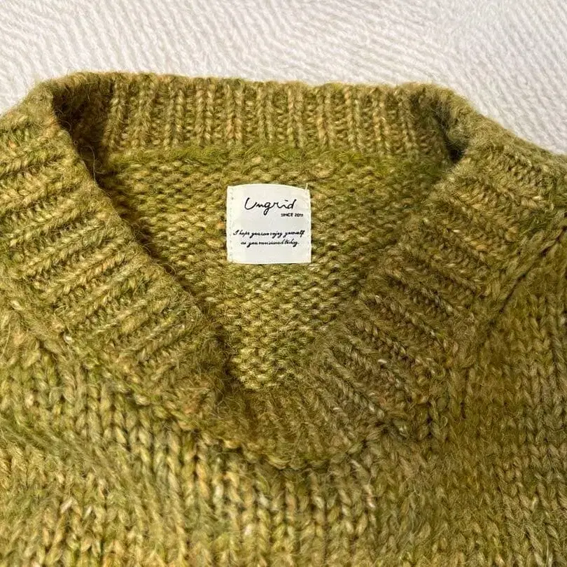올리브 그린 니트 스웨터 긴팔 크루넥