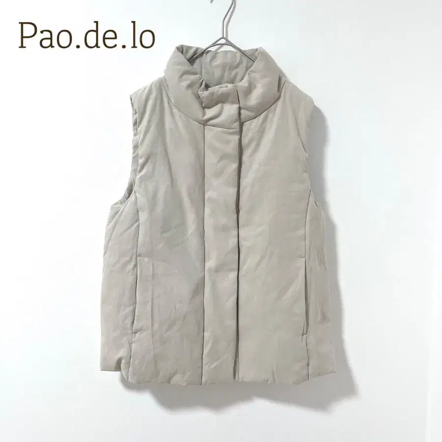 pao de lo의 하이넥 디자인이 인상적인 다운 베스트입니다.