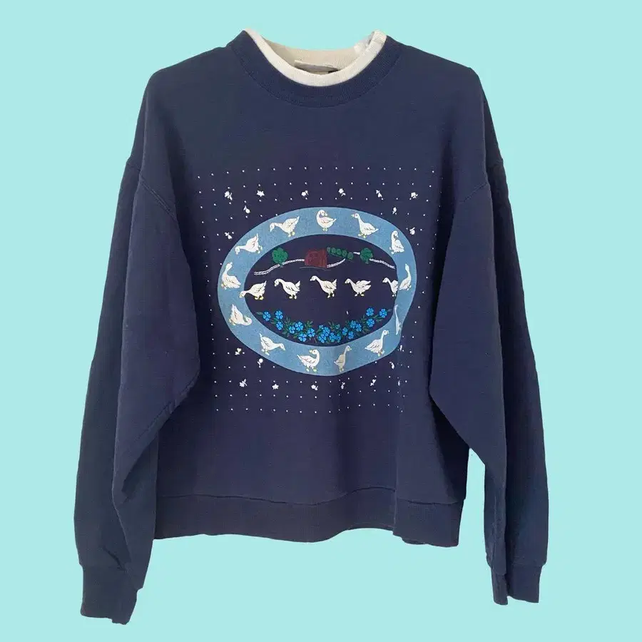 오리 맨투맨 레트로 네이비 구제 의류